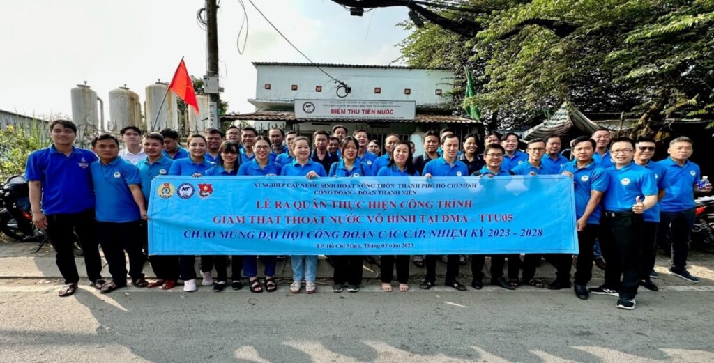 Công đoàn, Đoàn Thanh niên Xí nghiệp tổng ra quân thực hiện công trình “Giảm thất thoát nước vô hình tại DMA TTU05” tạithị trấn Tân Túc, huyện Bình Chánh”.